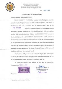 Let us know if you wish to obtain a Donors Certificate BIR Form 2322 for your tax credit or